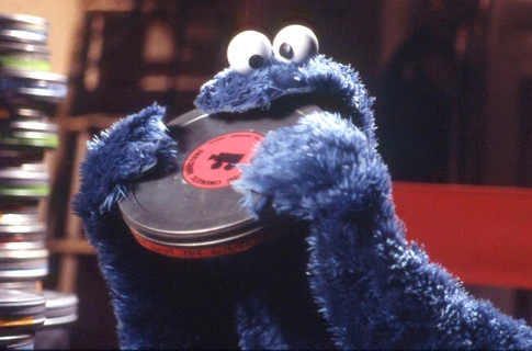 - Film reels in the framing scene with Cookie Monster include All About Eve, La Dolce Vita, Psycho, Ben-Hur, Star Wars, Citizen Kane, Plan 9 from Outer Space, Modern Times, High Noon, Casablanca, Gone with the Wind, and Ishtar.