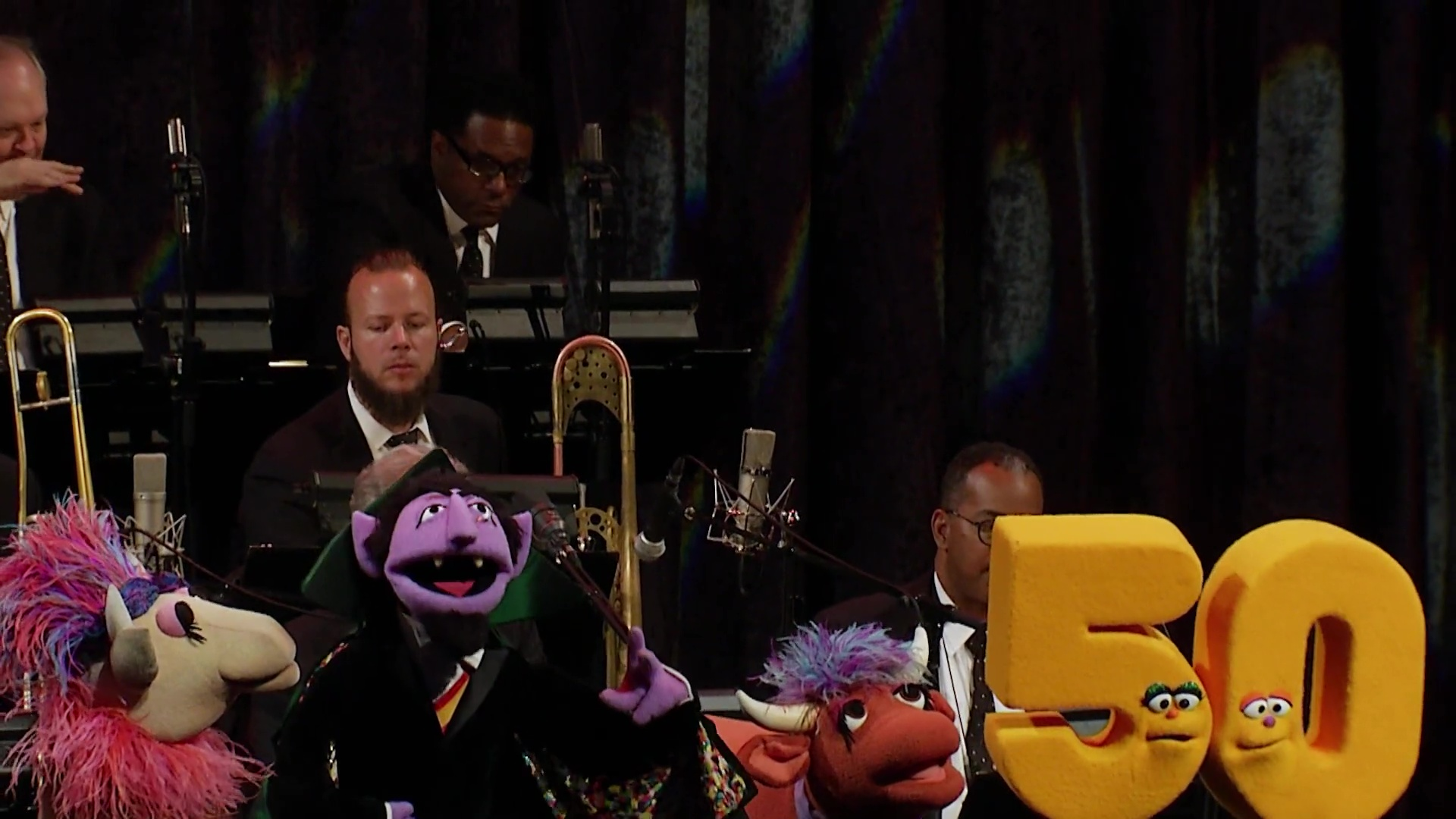 A Swingin' Sesame Street Celebration: 50 Years & Counting is a Sesame Street concert held at the Rose Theater in Lincoln Center on October 25 and 26, 2019. The concert featured the Muppet cast joining the Jazz at Lincoln Center Orchestra and Wynton Marsalis performing new jazz arrangements of classic Sesame Street songs in celebration of the show's 50th anniversary.