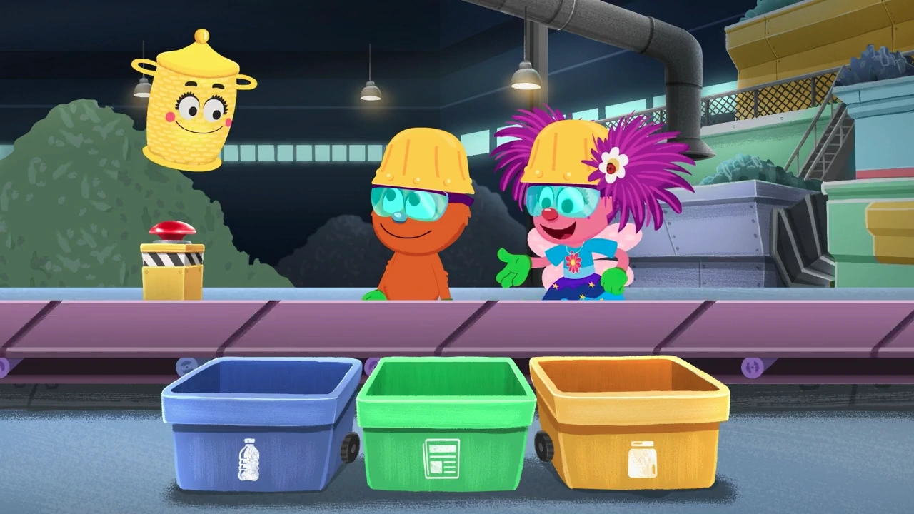 Basket takes Abby and Rudy to a recycling center to be sanitation workers and sort the various, recyclable items.
