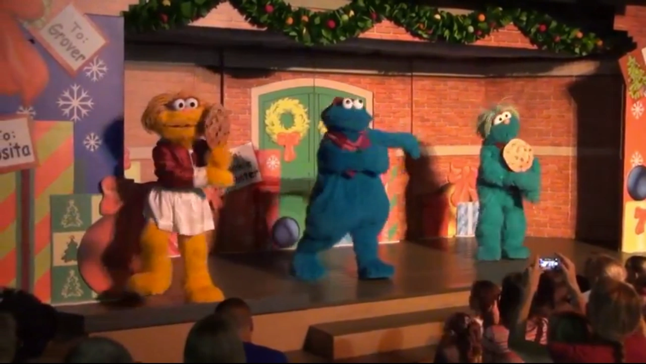 Cookie Monster (backed up by Zoe and Rosita) performed the song in the Busch Garden stage show, Elmo's Christmas Wish.