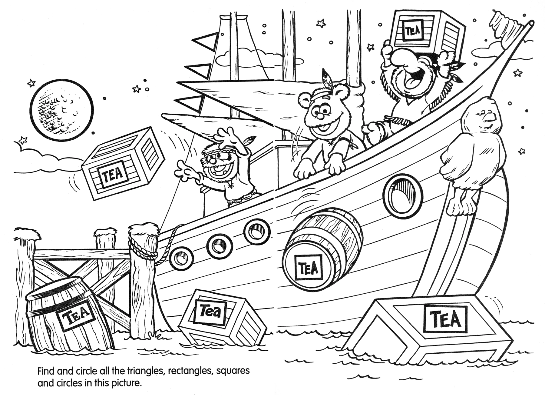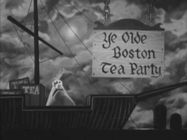 - The Muppet Babies revisited the American Revolution (and other historical periods and locales) again in the 1991 coloring book A Trip Through Time, including the Boston Tea Party.