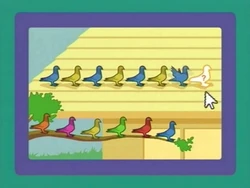 Computer | Bert plays a computer game: Pigeon Pattern with Bernice. (Yellow and blue pigeons) |