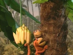 Muppets | In the jungle, Joey and Davey Monkey see a bunch of bananas on a tree, and try to figure out how to get them down. They climb up the tree, knock the bananas off, and are about to climb down, when an elephant carries the bananas away. They decide to order a pizza instead. (First: Episode 3230) |