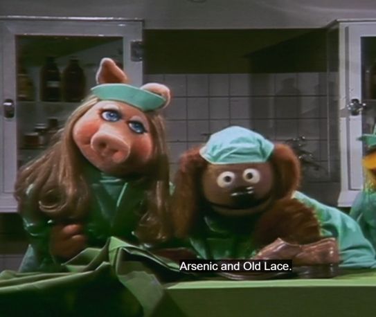 - The "Veterinarian's Hospital" patient in The Muppet Show episode 212 is a shoe. Doctor Bob diagnoses it with arsenic poisoning, since it has old lace. Nurse Piggy responds with the play's title, while Nurse Janice says that's an old show.