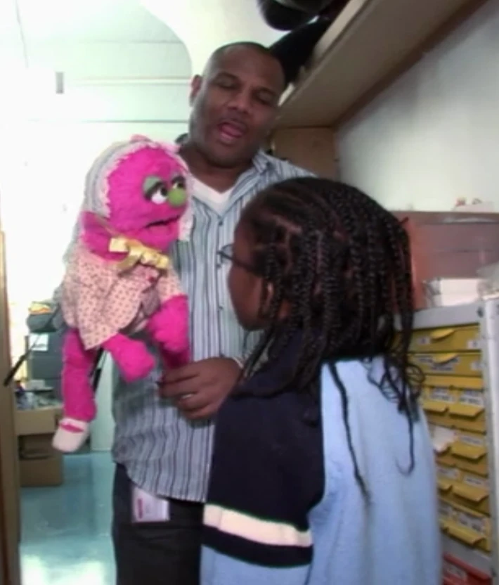 Natasha is a very fast crawler. Her parents (and even Oscar, who once babysat her) can't even catch up to her. Natasha has also been babysat by Fran Drescher who was well known at the time for playing TV's The Nanny. Snuffy once watched Natasha in the character's first appearance, and tried to teach her to say a new word. She ended up learning two: "Oh, dear." (First: Episode 2215) Since she is too young to understand other people, Natasha does the opposite of what she's told (such as crawling fast, when her parents tell her to crawl slowly). However, it appears that she can understand Frazzle and vice versa, as shown in Episode 3643. In Episode 3662, she is seen growing her first baby, monster horns, which then fall out soon after (thus, leaving spaces for her grown-up, monster horns to come in eventually).