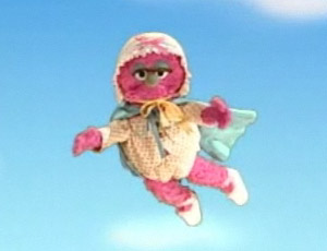 Baby Natasha has appeared in at least four sketches as a superhero known as Super Baby. In one sketch, her parents, Humphrey and Ingrid, have a large bottle of milk, but no baby, and they don't want it to go to waste, so Super Baby arrives and drinks the milk. In another sketch, Humphrey and Ingrid wonder what Superbaby will do that begins with S, which turns out to be "sleep". (First: Episode 3653) In another sketch, Super Grover talks about Super Baby as she constantly flies back and forth. In another sketch, she looks for the letter U. She also appears in Elmo's World: Sky in this persona.