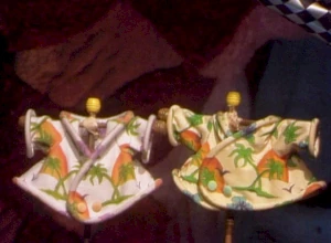 Near the end of the episode "A Tune for Two," Cotterpin Doozer can be seen wearing a banana tree shirt similar in design to Wembley's, with the only difference being that hers is smaller to accommodate her size, as Doozers are 1/10 of the size of a Fraggle. Wembley, in return, can be seen wearing a visor similar to Cotterpin's.
