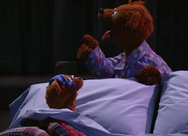 Muppets | Cousin Bear is staying at Baby Bear's house. At night, Cousin Bear sees a tree's shadow on the wall and is afraid that it is the Boogey Bear. Baby Bear explains that it's a shadow, but Cousin Bear can't sleep because it still scares him. Baby Bear closes the window, and they enjoy a good night's sleep. Edited from Episode 3987 |