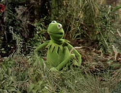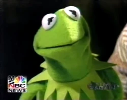 - When Kermit passes through a monitor that turns him black-and-white in The Muppet CD-ROM: Muppets Inside, Fozzie says, "It doesn't surprise me. You always said it's not easy being green."