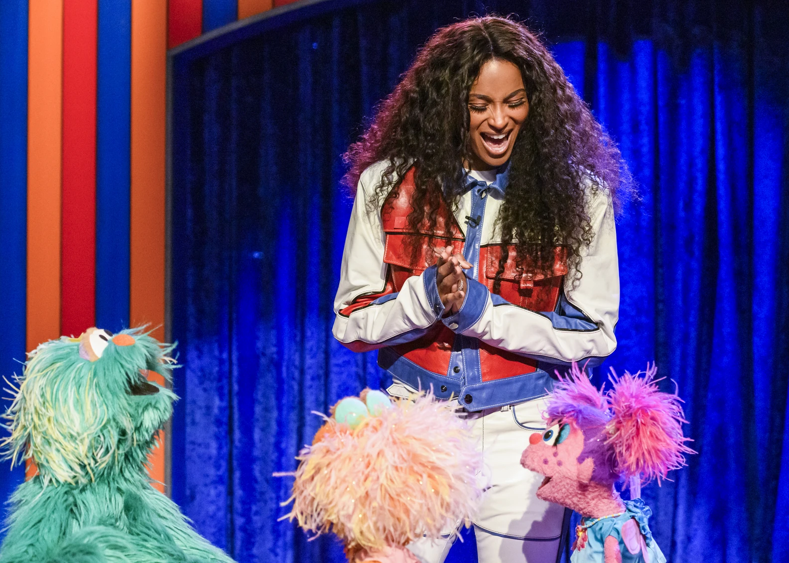 The Not-Too-Late Show with Elmo episode 113 sung by Ciara , Abby, Rosita, and Zoe