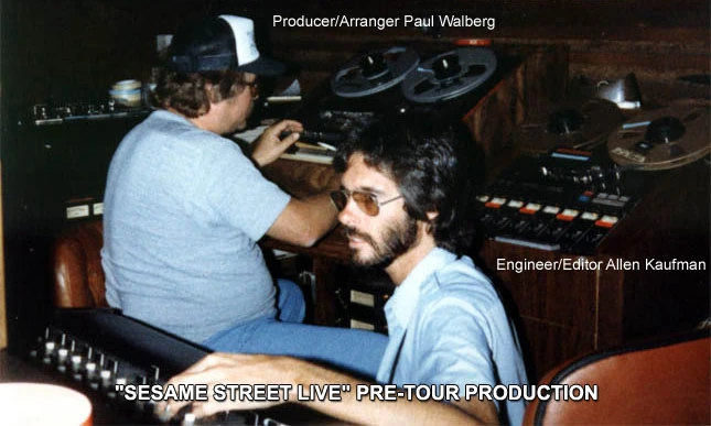 Music director Paul Walberg and recording engineer Allen Kaufman work on a dialog sequence together for Big Bird's Super Spectacular Totally Amateur Show. (Piper Recording Studio, Torrance, CA.)