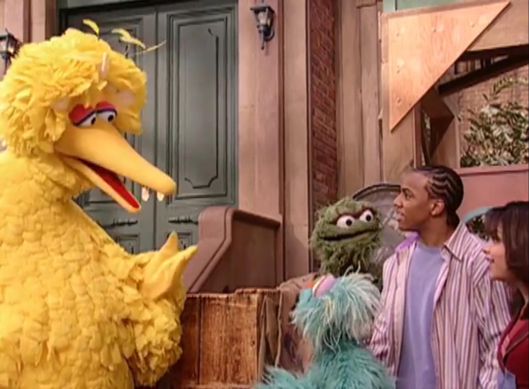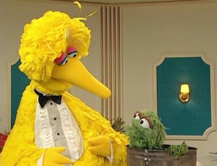During a teaser for their April 4, 2006 appearance, Oscar and Big Bird appear with host Alex Trebek. Oscar says the audience will be wasting their time while Big Bird chuckles.
