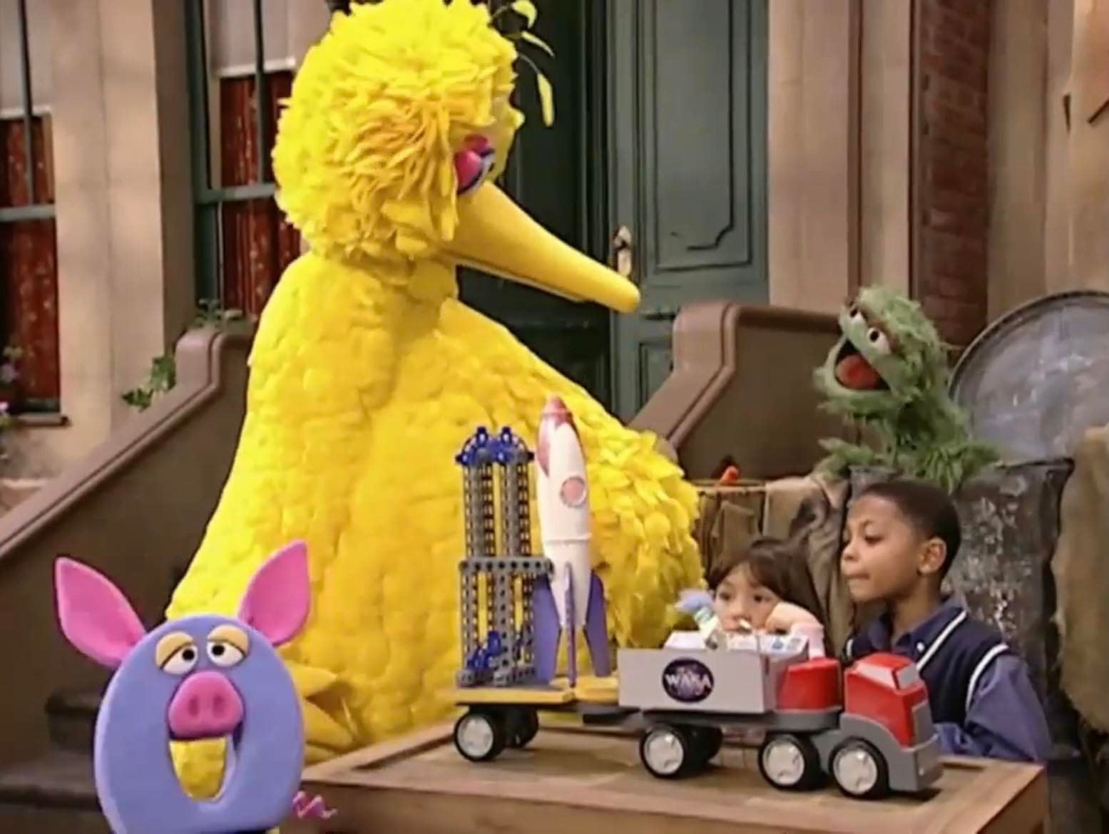 Caroll Spinney performs Big Bird in the cold open, and switches to performing Oscar for the rest of the Street plot. Big Bird (whose lines are prerecorded by Spinney, and puppeteered by Matt Vogel[1]) makes occasional comments to Snuffy as the WASA space shuttle prepares for liftoff.
