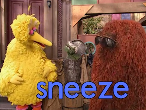 Big Bird and Snuffy play the "Open and Closed Game." Big Bird opens and closes his eyes, and Snuffy closes and opens his mouth. They ask Oscar to play, and, though he refuses, he demonstrates open and closed several times.