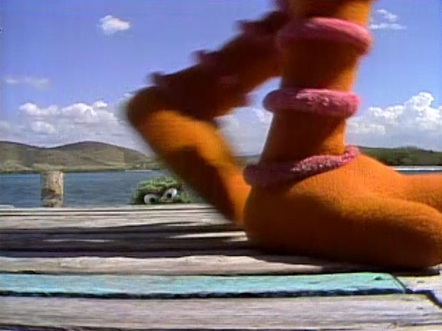A brief interaction where Oscar warns Big Bird of SuperWorm's fear of birds is accomplished with their shots being taped separately, as indicated by the script, and edited together.