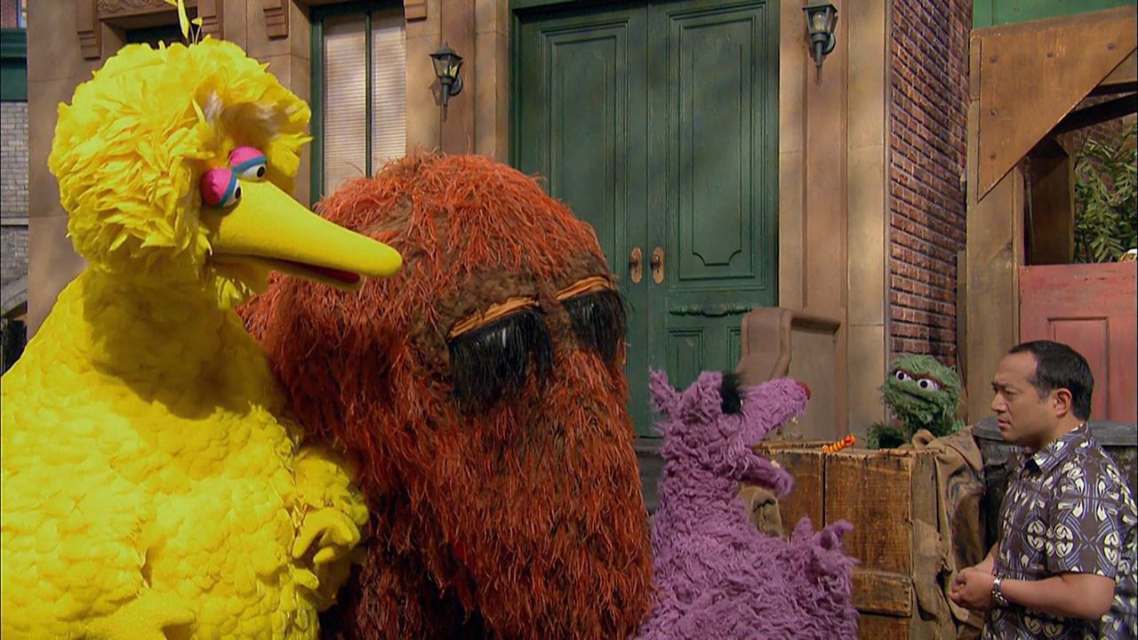 Big Bird and Oscar appear together throughout the entire episode, including Oscar telling both Big Bird and Snuffy to leave his premises while preparing some pepper pancakes and even unintentionally adding a verse to Zoe's happy song.