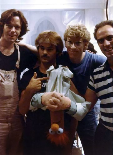Filming The Muppets Take Manhattan. (L-R) Peter Baird, Bill Myer, Michael Earl, Richard Hunt.
