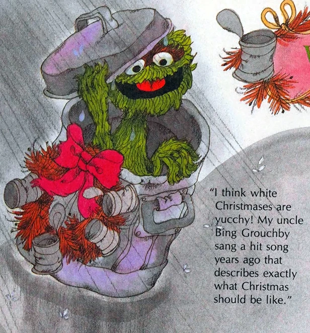 - Oscar the Grouch, in the 1982 book A Sesame Street Christmas, mentions his Uncle Bing Grouchby who introduced "Wet Christmas," the Grouch equivalent to "White Christmas."