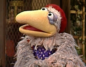 The same puppet was initially used in Follow That Bird as a part of the Board of Birds and subsequently as a patron at Birdland (including Episode 3060, performed by Rick Lyon).