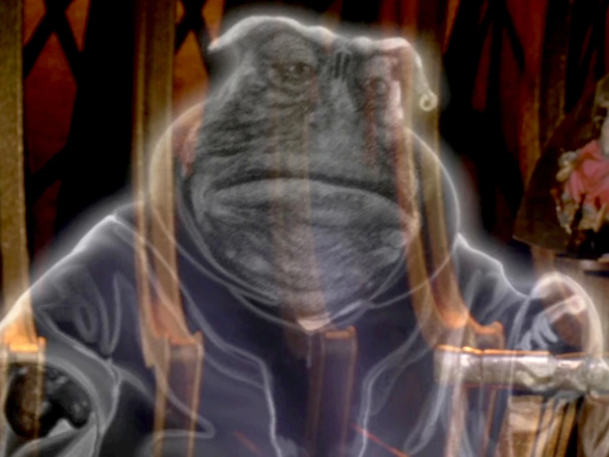 Dominar Bishan is the leader of Hyneria and the cousin of Rygel XVI. While previously mentioned on Farscape multiple times, Bishan doesn't properly appear until The Peacekeeper Wars miniseries (albeit via hologram). For his appearance, Bishan was realized as a digital puppet.