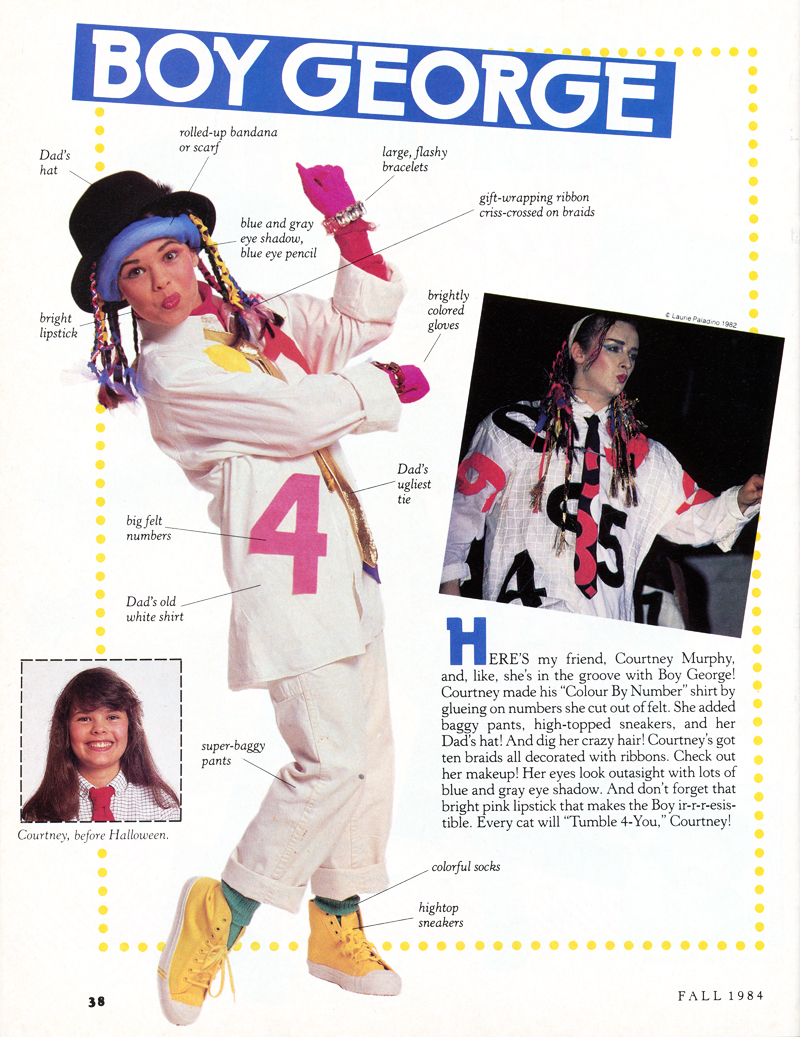 - In the Fall 1984 issue of Muppet Magazine, Janice hosts a feature about how to make your own Halloween costume. Boy George is one of three highlights including Michael Jackson and Cyndi Lauper. The costume is modeled by Janice's "friend" Courtney Murphy.