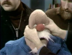 | The Ed Sullivan Show "A Change of Face" (1969) A doctor, played by Rex Robbins, prescribes a change for a Whatnot Muppet whose life has gotten into a rut. Robbins changes him from an old man to a teenage boy, then a hipster, then a poet, then a mobster, then a drunk, and then an alien. Robbins is freaked out by this last and tries to change him back to an old man, but gets his features upside down. | |||
