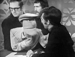 The Mike Douglas Show (1966) Jim Henson, Frank Oz and Jerry Juhl play with The Southern Colonel and his facial features. | ||