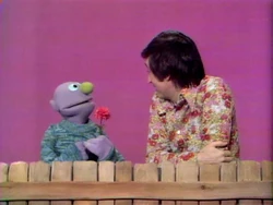 Sesame Street (First: Episode 0660) Bob is approached by an Anything Muppet (Jim Henson) with no face, so he gives him eyes to see what a lovely day it is and a nose to smell a flower. The AM thanks him and leaves to gift the flower to a friend. |