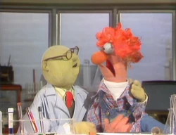 In one Muppetisms segment, the duo conduct an experiment to see if penguins enjoy dancing the bunny hop (they do). Afterwards, they decide to see if the penguins like the mambo. Bunsen is visibly impressed by Beaker's dancing, calling it "marvelous." After the scene cuts away, with the mambo still going strong, Bunsen is heard stating that it's his turn to lead their dance now. |