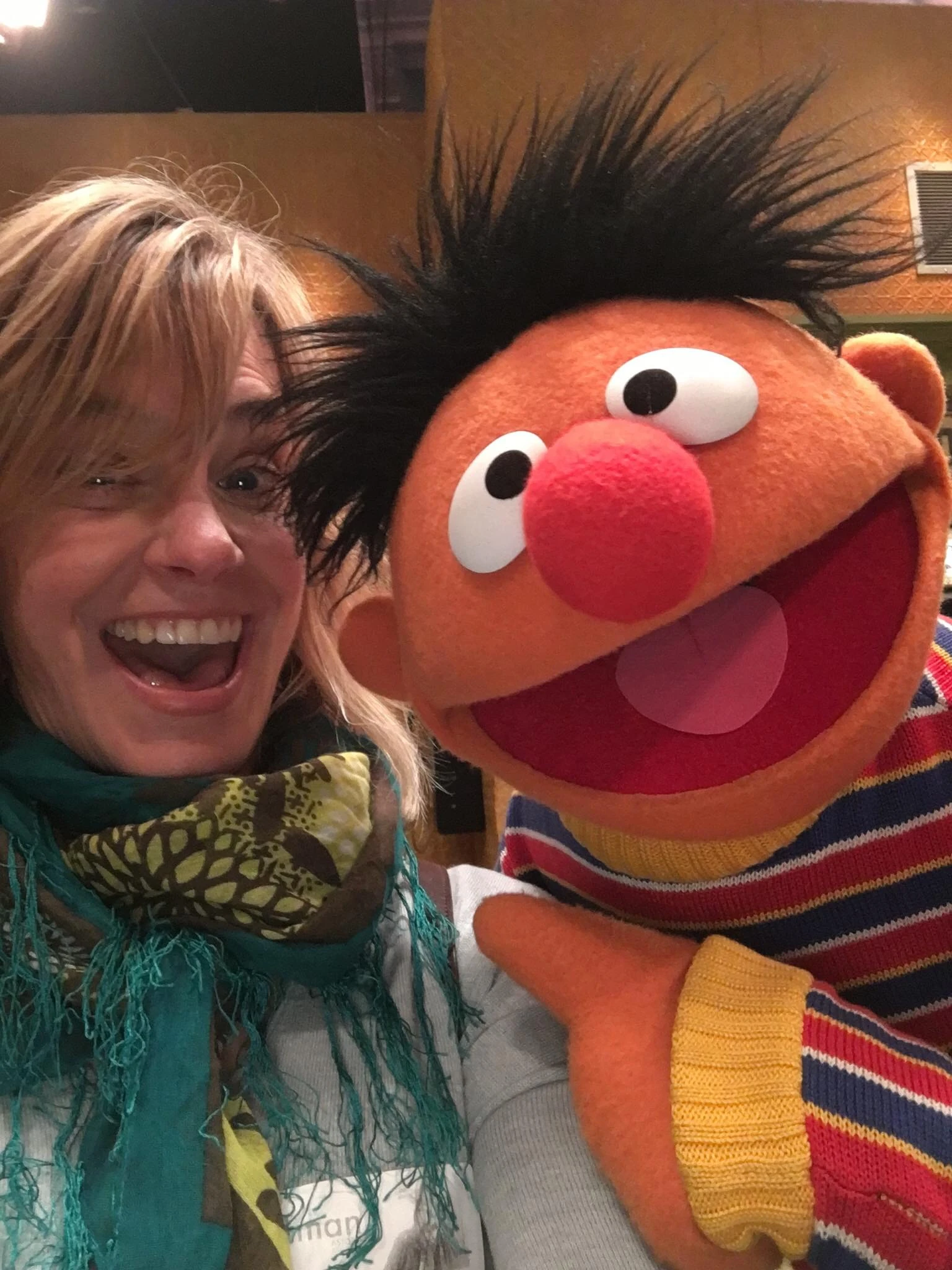 Catherine Mary Stewart (b. 1959) is an actor who began her career in the 1980s. She visited the set of Sesame Street in 2017, meeting Abby Cadabby, Herry Monster, and Ernie, and posing for photos in Big Bird's nest and Hooper's Store.[1]