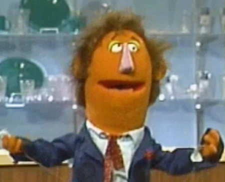 A china shop clerk appears in a Sesame Street sketch with Simon Soundman and Old MacDonald. Eager to assist the shop's patrons, the clerk patiently waits as Simon Soundman meets Old MacDonald, who is something of a celebrity to him.