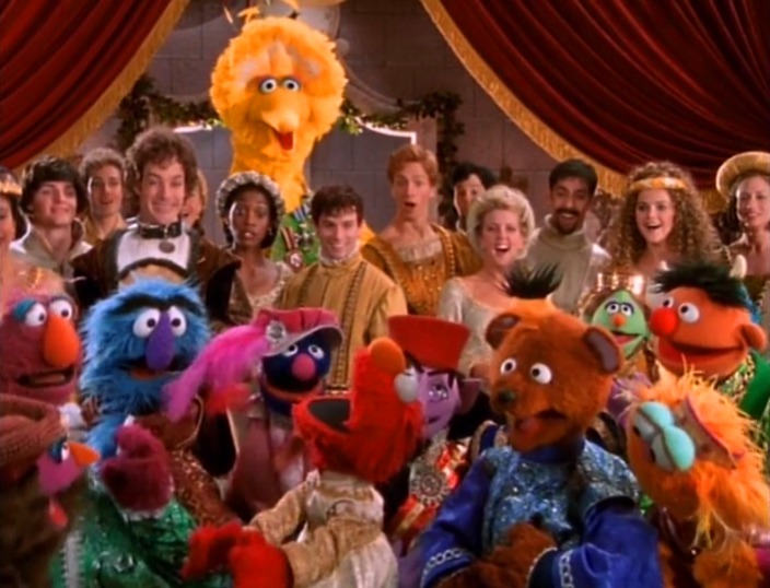 - Elmo, Zoe, Telly Monster, Baby Bear, Mice, Prince the Dog, King Fred Charming, Grover, Ernie, Bert, Mr. Johnson, Cookie Monster, Kermit the Frog, Count von Count, Big Bird, Mr. Snuffleupagus, Prairie Dawn, Rosita, Anything Muppets