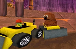 2000 | Muppet RaceMania Flange Doozer is unlockable as a playable character. The Gorgs can be seen through some holes in the Fraggle Rock level. |