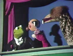 This page does not include examples of museum exhibits where propped puppets appear in the same room together (with the exception of live ceremonies in association with said exhibit) or instances where verbal mentions crossover with other Muppet projects which are documented in Category:Inside Jokes. The page also does not include cases of recycled puppets; characters here should be reasonably established rather than examples of when a puppet was reused for ancillary purposes.