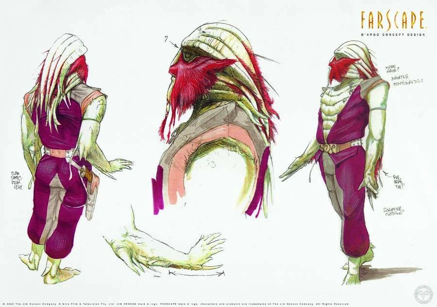 Ka D'Argo is a Luxan warrior. Originally imprisoned for the murder of his wife Lo'Laan, D'Argo is one of several prisoners who escapes with Moya at the beginning of Farscape. Over the course of the series, he develops a close friendship with John Crichton and a romantic relationship with Chiana.