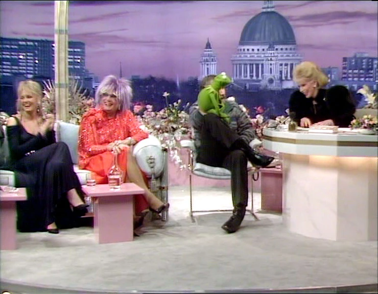 Dame Edna was a guest on the premiere of Joan Rivers' talk show, Can We Talk?, along with Jim Henson and Kermit the Frog.