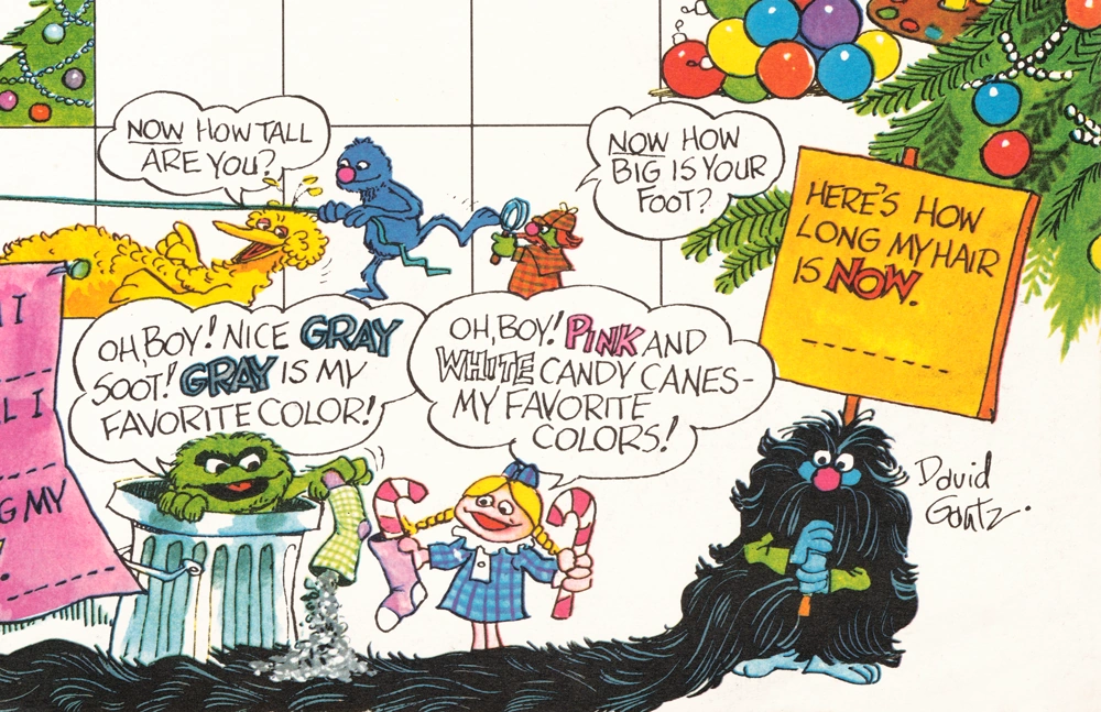 Dave Gantz (1922-2007) was a cartoonist and illustrator who worked on several Sesame Street print projects, beginning in 1974.