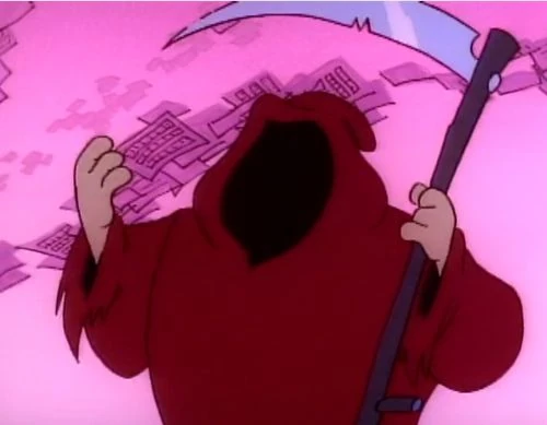 - The Dog City episode "Ya Gotta Have Hart" sticks Ace Hart in a parody of European art films, including an encounter with Death (played by Bugsy Vile as the Grim Reaper with scythe, though he adds "Senseless Death" with a chuckle).