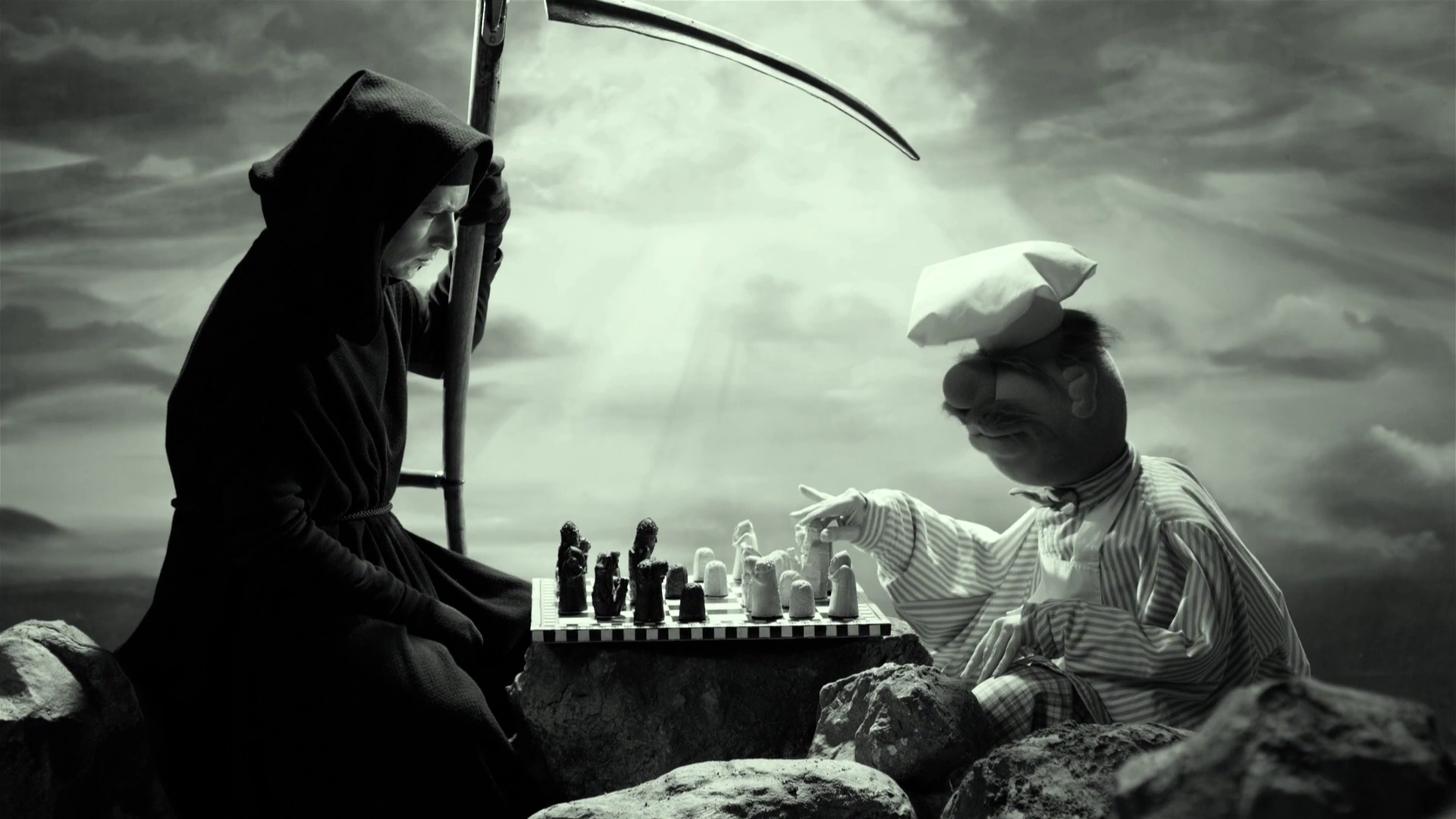 - In the "We're Doing a Sequel" number from Muppets Most Wanted, the Swedish Chef pitches a Seventh Seal-style film in which he plays chess with Death. The Grim Reaper is seen again dancing for the song's finale.