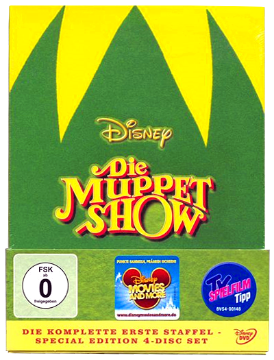 The packaging of select box sets also included a Kermit sticker, promoting a sample of the forthcoming German editions of The Muppet Show Comic Book: Meet the Muppets (titled Die Muppet Show: Applaus, Applaus, Applaaauuus!), The Muppet Show Comic Book: The Treasure of Peg-Leg Wilson (titled Die Muppet Show: Auf Schatzsuche) and Muppet Peter Pan.