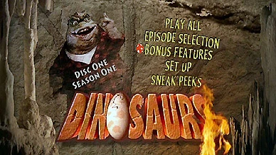 - On the bonus features menu, highlight "Creating Dinosaurs: The Sketches That Started It All" and press left to play a clip of Michael Jacobs pointing out how the Dinosaurs character names come from oil companies. (0:40)