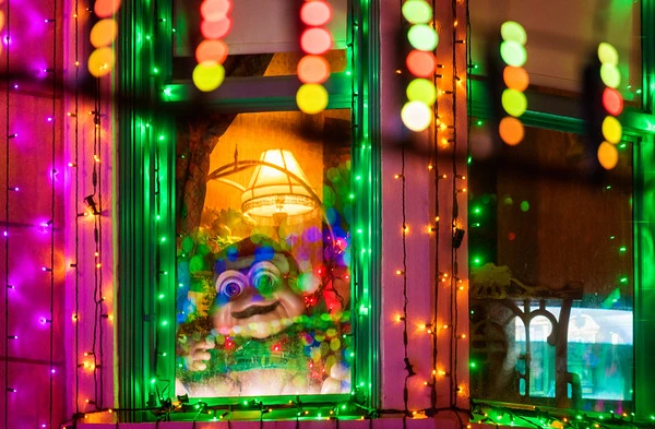 The Baby Sinclair prop from Dinosaurs Live! displayed in a window during the 2014 Osborne Family Spectacle of Dancing Lights.