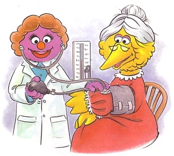 Doctor Fuzzle is a doctor who takes care of Granny Bird when she sprains her ankle in I Want to Be a Doctor. Big Bird goes to Dr. Fuzzle's house and tells her about Granny Bird's accident, and Dr. Fuzzle immediately grabs her black bag and walks to Granny Bird's house to check her out. She checks out Granny's ankle, and helps her walk to bed. She bandages Granny's ankle, and tells her to come to the office the next day for X-rays.