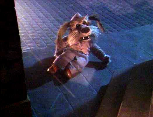 Ace confronts Them and Colleen escapes her gags and rope while Ace distracts them using the Pekingese art of "Whyioughta". But when Them and his gang try to kill Ace, Colleen drives a car into the gangsters. A chase through the city ensues (accompanied by dramatic piano music provided by Rowlf, who always wanted to take his act on the road). In the chase, Scruffy, Laughing Boy and Mad Dog are launched into a billboard (Rowlf: "How come all the losers wind up in advertising?"). Miss Belle attempts to tell Bugsy they've lost, but Them doesn't know the meaning of the word lost (though Mad Dog does).