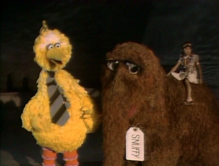 One of the earliest outlines for the special retained the same essential conceit for the plot - Big Bird wandering off from the group to meet up with Snuffy at the museum results in everybody being locked in overnight. However, their adventure, while still evoking elements of Egyptian mythology, instead focused on the two searching for an ancient Snuffleupagus sarcophagus (intended to be played by the sarcophagus of Harkhebit) to ask it an important riddle. In between these scenes and musical numbers, there were planned to be more scenes of the Muppet and human characters observing various artifacts and getting the kids' unfiltered responses. Additional scenes that were eventually removed or reworked included Big Bird and Snuffy imagining themselves in an old American ballroom event, some of the cast mistaking a resting Snuffy for a museum piece, and Ernie and Bert's unique perspectives on the museum - Ernie admires the art, while Bert fawns over the pedestals and benches.[1]