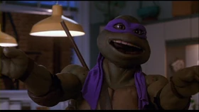 Donatello is the intellectual of the Teenage Mutant Ninja Turtles as seen in the 1990 Creature Shop films Teenage Mutant Ninja Turtles and Teenage Mutant Ninja Turtles II: The Secret of the Ooze. He often joked with his younger brother Michaelangelo, while Leonardo and Raphael argued. In the second film his role expanded as he used his intellect to hack a computer at T.G.R.I., and developed an anti-mutagen to revert Tokka and Rahzar back to their original forms.