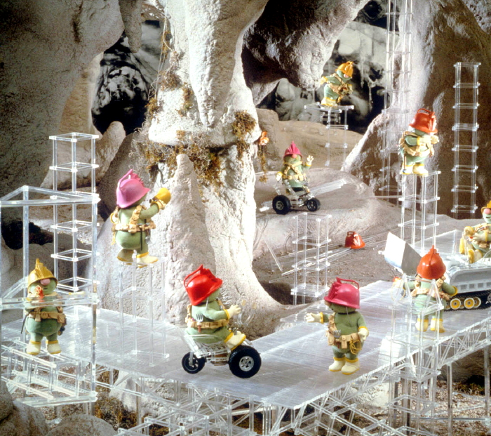 Unlike Fraggles, Doozers love to work all day long, and they hate playing games. When compared to the other races within Fraggle Rock, they are by far the most technologically advanced. Most Doozers are construction workers, while others are architects or miners. With the help of various Doozer machines and vehicles, they build elaborate constructions all over Fraggle Rock, including towers, buildings, roads, and bridges.