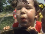 "Drink of Water" is a Sesame Street song about how on hot days, a drink of water will refresh you seen over footage children clamoring over the playground water fountain.