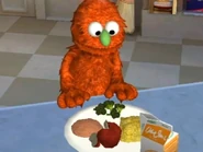 He appears in several activities during the game, including getting a healthy meal from Hooper's Store. When Grover asks him to show Elmo and Abby his amazing monster dance, he reveals he is instead prepared to show them his amazing monster pants (having misheard Grover).