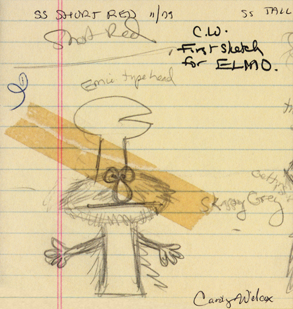The puppet that would eventually become Elmo was designed in 1979 by Caroly Wilcox.[6][7] Intended as a generic Anything Muppet monster, labels used for the puppet included "baby monster," "short red" (in Wilcox's sketch), and "little red" (on exhibit at Center for Puppetry Arts, Worlds of Puppetry, Jim Henson Collection).